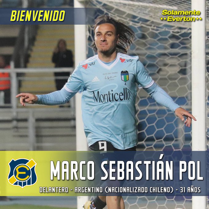 Everton oficializó la llegada del tercer refuerzo de cara al 2020. El delantero argentino, nacionalizado chileno, Marco Sebastián Pol llega por 1 año a vestir la camiseta oro y cielo, proveniente de O’Higgins de Rancagua, donde marcó 5 goles en el segundo semestre.