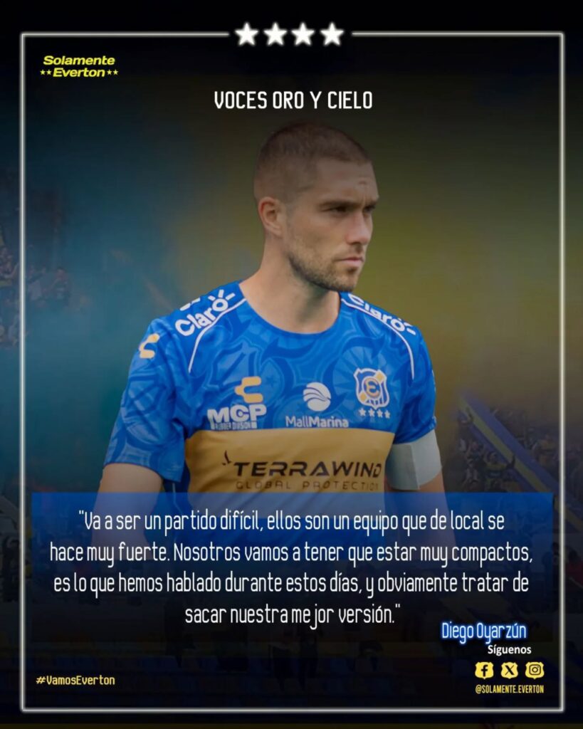 En la antesala del partido de este viernes a las 17:00 hrs. en el estadio La Cisterna, el defensor oro y cielo analizó el desafío ante Palestino, un encuentro fundamental en la lucha por la permanencia de Everton en la Primera División.