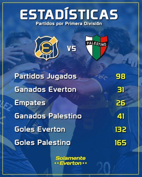 Aquí les dejamos las estadísticas de los duelos por primera división entre Everton y Palestino.