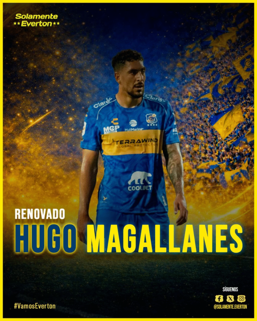 Everton de Viña del Mar continúa avanzando en la conformación de su plantel para la temporada 2026 de la Liga de Primera. En este contexto, el club confirmó la renovación del defensor uruguayo Hugo Magallanes, quien seguirá defendiendo la camiseta oro y cielo tras un sólido año 2025.