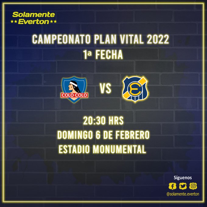 Se acerca el debut oro y cielo en el Campeonato Plan Vital 2022. Este domingo, desde las 20:30 hrs, Everton enfrentará al cuadro albo en el Estadio Monumental.